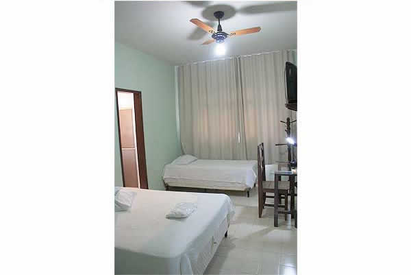 Apartamentos standard com TV, telefone, ventilador de teto e banheiro privativo.